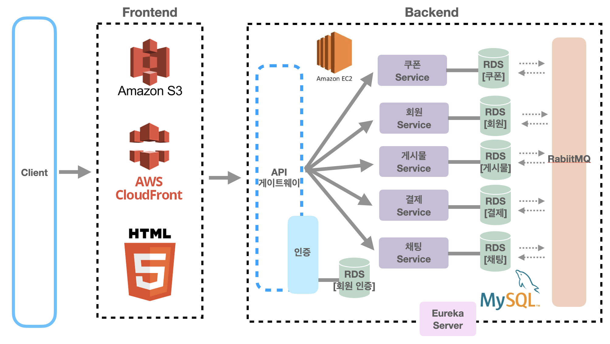 본 서비스 아키텍처를 그림으로 표현하는 이와 같을 것이다.
